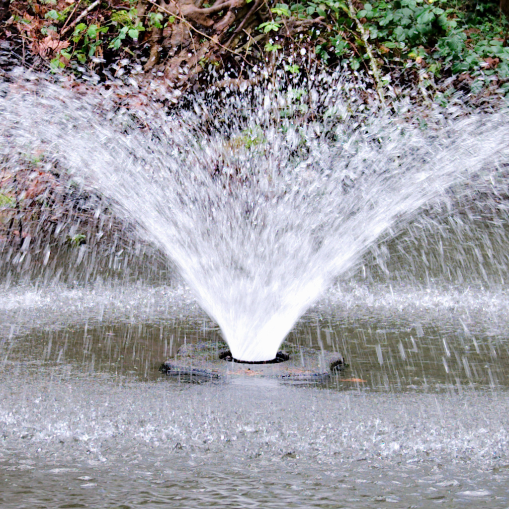 Fountains are considered as water features that are pleasing to the eye and are often marketed as aerators. However, while a fountain or other mechanical mixers can introduce some oxygen to the water’s surface, it’s impact seldom extends to the rest of the water column. Moreover, surface aeration is an ineffective way to add dissolved oxygen to a body of water, as it consumes the same or even greater amounts of electricity without significant benefits. Unless purely for aesthetic purposes, it’s advisable to opt for bottom-up diffusers or submerged aeration as they are more effective.